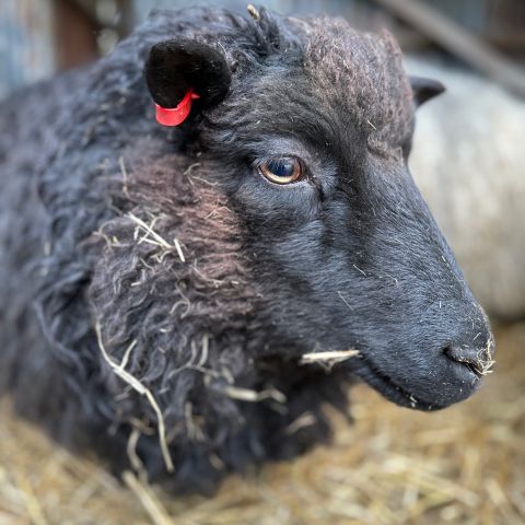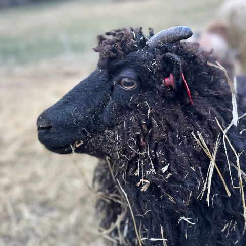 Det sorte får er litt mer sky enn de andre, men når hun først vil ha kos få